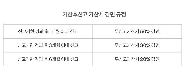 만약 신고가 누락됐다면, 누락한 신고분을 다음 신고 과세기간에 합산해 신고하는 것이 아니라 별도로 ‘기한후신고’를 해야 합니다. 만약 납세자가 신고 누락을 인지하고, 기한후신고를 하면 신고 시점에 따라 가산세 감면을 받을 수 있기 때문에 인지했다면 가장 빠른 시점에 신고하실 것을 권해 드립니다.