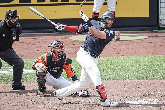레이예스는 지난주까지 출전한 54경기에서 타율 0.317를 기록했다. 224타수 71안타를 기록하며 리그 안타 부문 1위를 지켰다. 64개를 쌓은 2위 르윈 디아즈(삼성 라이온즈)와는 7개 차이다.