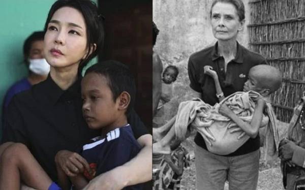 윤석열 대통령의 4박 5일간 동남아 해외순방에 동행한 김건희 여사는 주최국이 준비한 각국 정상 배우자 프로그램 참여 대신 개인 일정을 소화했습니다. 김 여사는 캄보디아 프놈펜에서 12일(현지 시각)에 선천성 심장질환 환아를 방문했는데요. 대통령실이 공개한 김 여사가 아이를 안고 찍은 사진이 언론을 통해 보도되면서 과거 소말리아 유니세프를 방문한 오드리 햅번을 연상시킨다는 이야기와 함께 ‘빈곤 포르노’라며 비판하는 여론이 일었습니다.