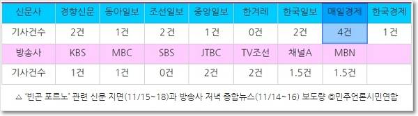 장경태 더불어민주당 의원은 11월 14일 최고위원회의에서 “김건희 여사의 빈곤 포르노 화보 촬영이 논란이 되고 있”다며 “가난과 고통은 절대 구경거리가 아니다. 그 누구의 홍보수단으로 사용돼서도 안 된다”고 비판했습니다. 온라인상에서 지적된 ‘빈곤 포르노’ 논란이 국회의원 입을 통해 언급되자 언론 보도가 늘었는데요. 장경태 의원의 발언을 기준으로 11월 14~16일 지상파 3사·종편 4사 저녁종합뉴스와 11월 15~18일 6개 종합일간지‧2개 경제일간지 지면 보도를 살펴봤습니다(다른 주제의 기사에 ‘빈곤 포르노’가 잠깐 언급된 기사는 제외).