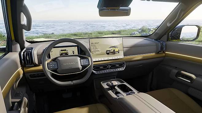 이 픽업트럭은 5인승 더블캡 형태를 갖추고 있으며, 'T'자형 헤드램프가 전면부를 가로지르는 LED 라인으로 연결되어 독특한 정체성을 표현한다. 특히 중앙에 위치한 3개의 조명 요소는 1980년대 닛산 하드바디 트럭(D21)에 대한 오마주로, 브랜드의 역사성을 현대적으로 재해석했다.
