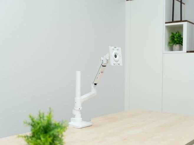 최근에는 책상위 공간활용을 위해 모니터암을 많이 사용하시는데요 이전 모델은 상판이 분할되어 있었던 반면 컴퓨터책상 2.0은 분할선이 없는 일체형으로 모니터암의 설치가 가능해졌습니다.