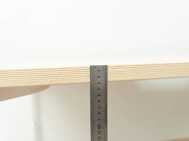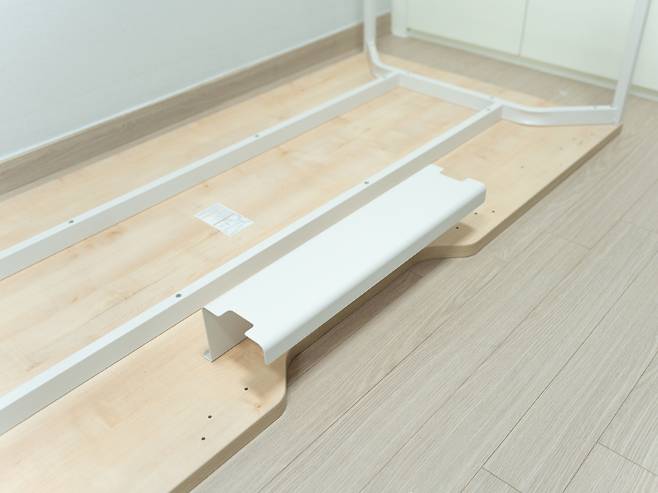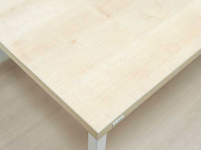 상판은 28mm 두께로 2T미만의 저가형 제품들과 달리 상당히 견고한편입니다. 상판은 유해물질 없는 E0등급의 PB(Particle Board) 소재이며, 양면은 LPM 및 두께 2mm ABS 엣지 마감처리가 되어있습니다. 지지하중은 50kg~70kg입니다.
