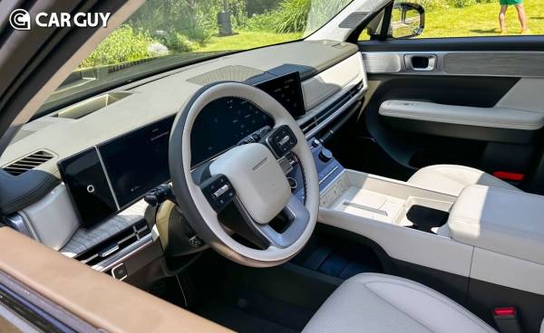 스티어링휠은 적당한 두께감에 그립 감촉이 상당히 좋다. 디자인은 다른 요소와 비교했을 때 평범한 수준이다. 그랜저에 적용된 1세대 그랜저 오마주한 휠이 아니라 다행이라는 생각이 든다.