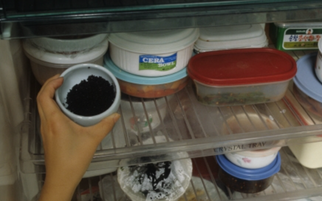 활성 숯은 1 g당 표면적이 축구장 두 개에 달해 냉장고 내부 수분과 발효 가스(CO₂)를 빠르게 흡착합니다.