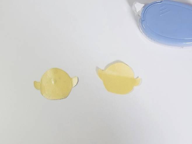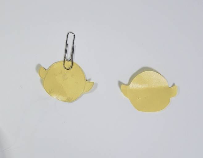 그다음 양면 테이프를 병아리 뒤에 붙여주세요.