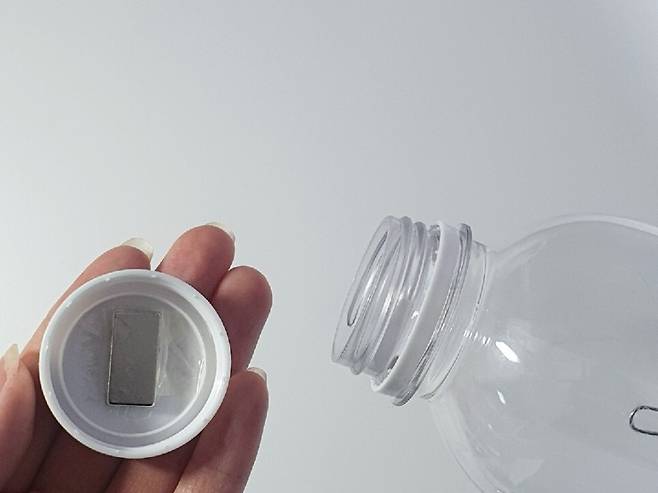 이제 병뚜껑 안에 자석을 붙여주세요.
