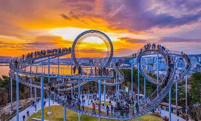 이제는 포항의 랜드마크로 자리 잡은 스페이스워크는 겨울에 특히 분위기가 분명해지는 곳입니다. 영일만과 도심을 한눈에 내려다보는 높이에서 걷는 구조물이라, 스릴감이 느껴지는데요. 중간 지점부터는 영일만과 도시가 한눈에 들어옵니다. 겨울에는 공기가 건조해 시야가 비교적 뚜렷한 편이라 멀리까지 보입니다.