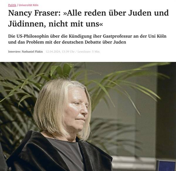 <전진하는 페미니즘> <좌파의 길> 등을 쓴 대표적인 비판이론가 낸시 프레이저가 이스라엘의 팔레스타인 집단학살을 비판했다는 이유로 독일 쾰른대 방문교수직에서 해임됐다는 언론보도가 나왔다.