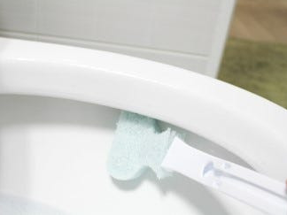 이 희석액을 수세미에 묻혀 변기 안쪽을 문지르며 초벌 청소를 시작하세요. 거친 면으로 문지른 후 부드러운 면으로 도포하면 락스의 소독 효과가 극대화됩니다. 그 자체로 기존의 냄새도 많이 사라집니다.