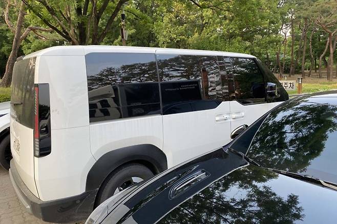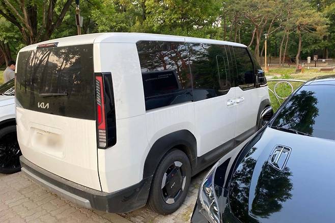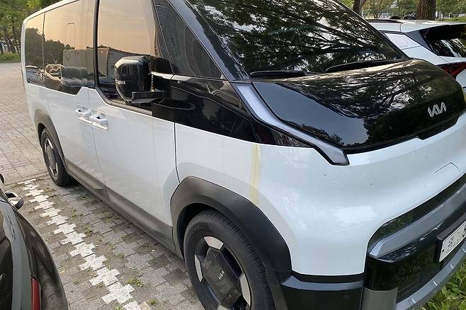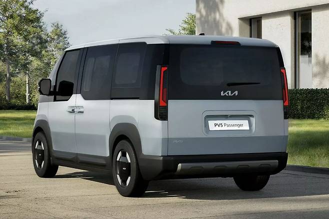 기아 PV5는 앞서 디자인 및 일부 사양이 선 공개됐다. 실물로 마주친 기아 PV5는 전반적으로 친숙한 미니밴 형태를 갖췄다. 후면부는 공간 활용을 위해 직각으로 떨어지는 디자인을 사용했고, 테일게이트 개방감 확대를 위해 테일램프는 양쪽 끝단에 적용됐다.