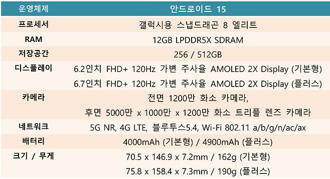 지난 시리즈에서 삼성전자는 오랜만에 엑시노스 칩셋을 탑재한 바 있다(울트라 라인업 제외). 삼성전자는 지속적으로 엑시노스 AP의 비중을 높이고 있지만, 금번 갤럭시S25 시리즈에는 세 라인업 모두 퀄컴 스냅드래곤의 AP를 채택했다. 삼성전자와 퀄컴이 협력해 개발한 ‘갤럭시용 스냅드래곤 8 엘리트’가 바로 그것으로, 세 라인업이 이 AP를 공유한다. 갤럭시용 스냅드래곤 8 엘리트는 직전 시리즈에 탑재된 AP보다 신경망처리장치(NPU) 성능은 40%, CPU와 GPU는 각각 37%와 30%의 성능 향상을 이뤄냈다. 램은 기본 모델과 플러스 모델은 8GB에서 12GB로 늘어났으며, 울트라 모델은 16GB까지 선택할 수 있다(1TB 제품 한정).