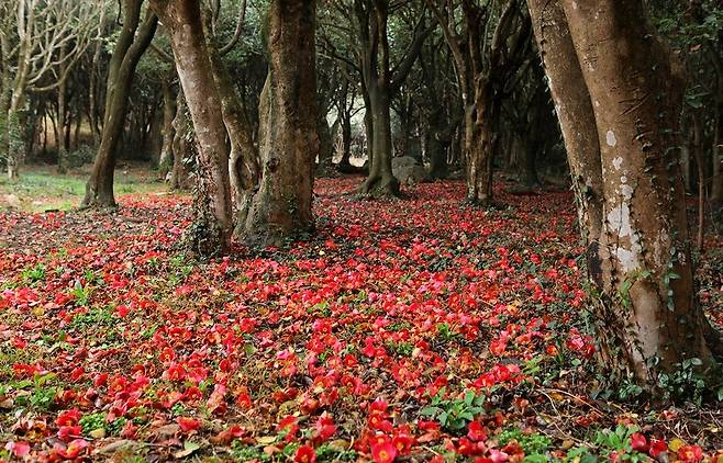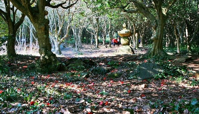 이곳의 동백나무숲은 역사적 가치와 자연적 가치를 인정받아 1962년 천연기념물 제151호로 지정되었다. 숲을 이루고 있는 동백나무는 대부분 토종 품종으로, 겨울 추위를 견디며 1월부터 꽃을 피우기 시작해 3월과 4월 사이 절정을 맞는다. 붉은 동백꽃이 숲 전체를 물들이는 시기에는 길을 따라 걸을 때마다 화사한 풍경이 펼쳐져 많은 여행객들이 찾는다.