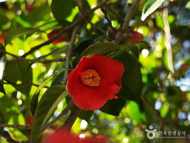 동백나무숲 사이로 이어진 산책로는 걷기 좋게 정비되어 있어 여유롭게 숲길을 즐길 수 있다. 약 7m 높이로 자란 동백나무들이 터널처럼 이어지는 구간은 이곳에서 가장 인상적인 풍경 중 하나다. 붉은 꽃과 짙은 초록 잎이 어우러진 숲길을 걷다 보면 자연 속에서 편안한 시간을 보내기에 충분하다.