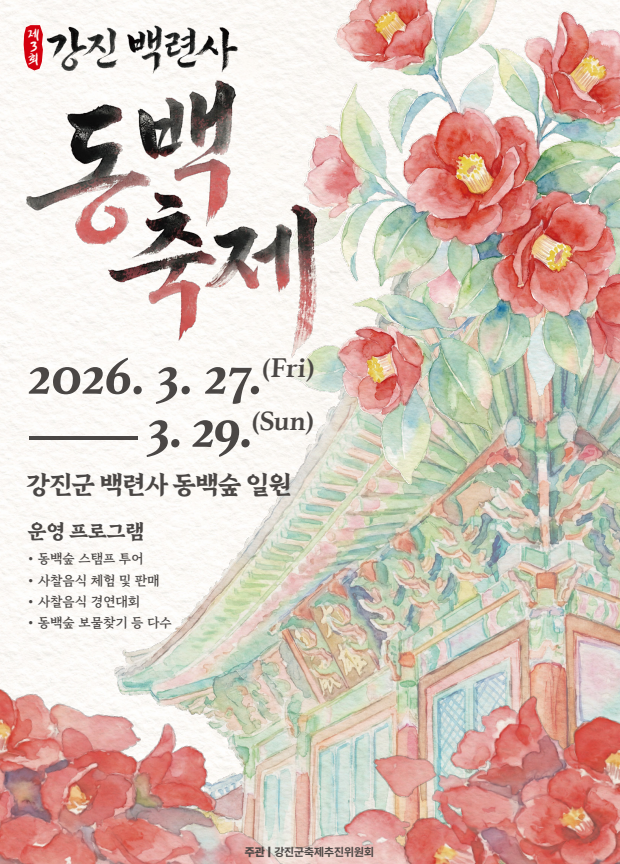 ※ 강진백련사 동백축제 일정: 2026.03.27(금) ~ 03.29(일)