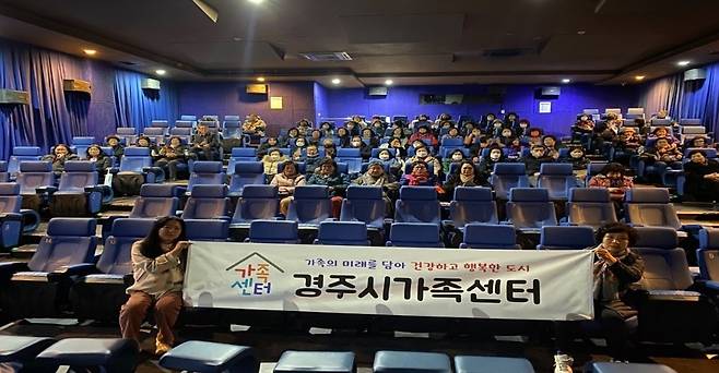 경주시가족센터는 '가족관계' 지원의 일환이자 노년기 프로그램인 '극장 소풍가요'를 통해 90명의 시민이 함께 영화를 관람하는 자리를 마련했다. 친구와 동행한 한 70대 참가자는 "이런 문화행사가 있어서 오랜만에 친구들을 만났다"며 "내 삶에 대해 생각하고 서로의 생각도 나눌 수 있는 좋은 기회였다"고 밝혔다.
