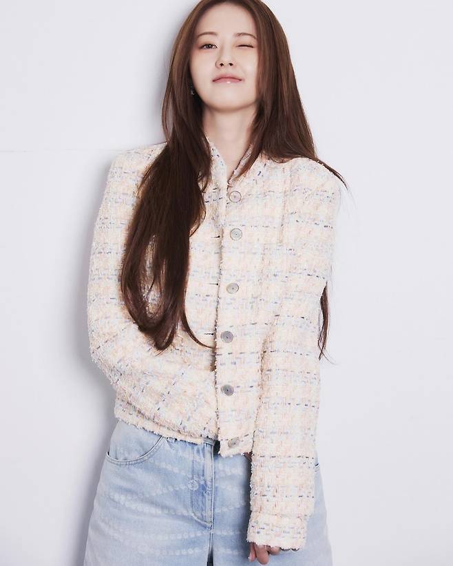 사진 속 고아라는 청바지에 크롭티와 트위드 자켓을 매치해 고급지면서 상큼한 패션을 선보였습니다.