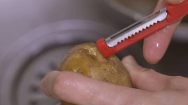 먼저 감자를 깨끗이 씻은 후, 씨눈을 제거하세요. 그리고 모두 껍질을 벗겨서 사용하세요.