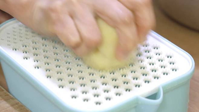 감자 전분이 빠졌다면, 감자도 강판에 함께 갈아 주세요. 믹서에 갈변 편하지만, 강판 특유의 식감을 맛보고 싶다면 힘이 들더라도 강판에 갈아 주는 것이 좋답니다.