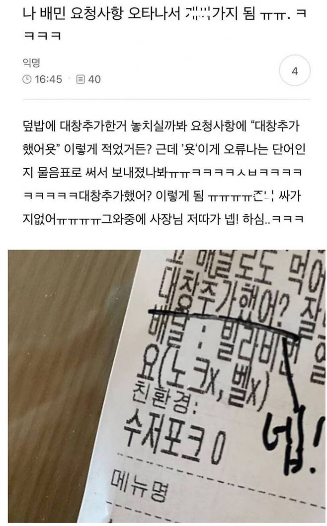 배민 주문하다가 오타 나서 버릇 없어진 사람