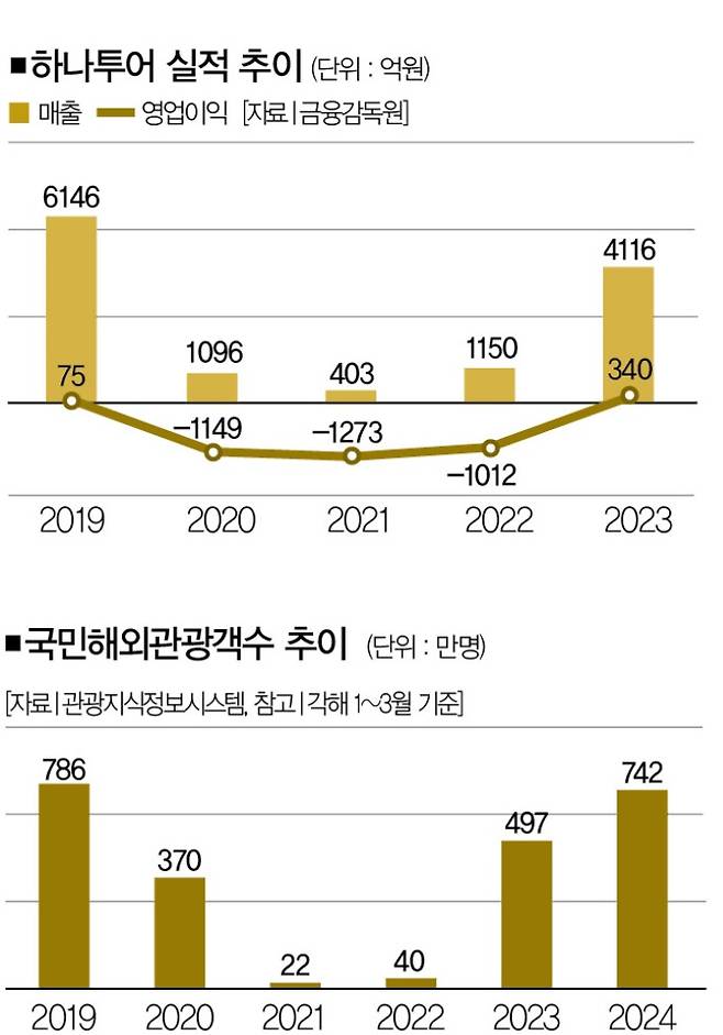 최근 분위기는 다르다. 엔데믹(풍토병·edemic)으로 전환한 지난해 하나투어는 호실적을 기록했다. 매출액은 전년(1150억원) 대비 258.0% 증가한 4116억원을 냈다. 영업이익은 340억원을 기록해 2019년 이후 4년 만에 흑자전환에 성공했다.