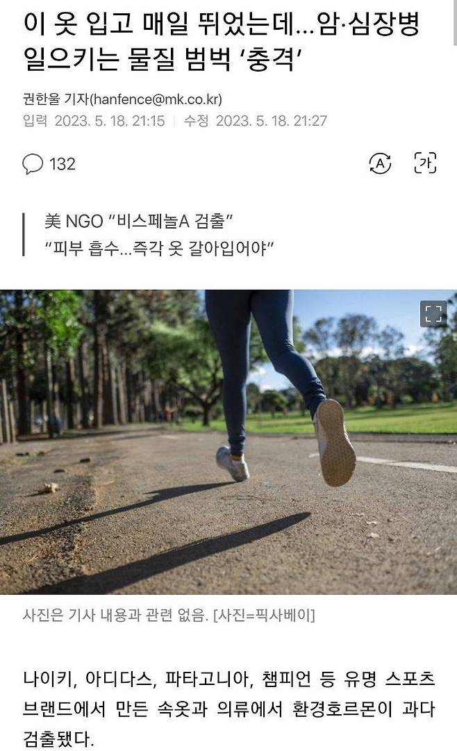 이 옷 입고 매일 뛰었는데…암·심장병 일으키는 물질 범벅 ‘충격’