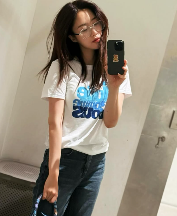 함은정은 화이트 티셔츠에 청바지를 매치해 편안한 분위기를 연출했다.