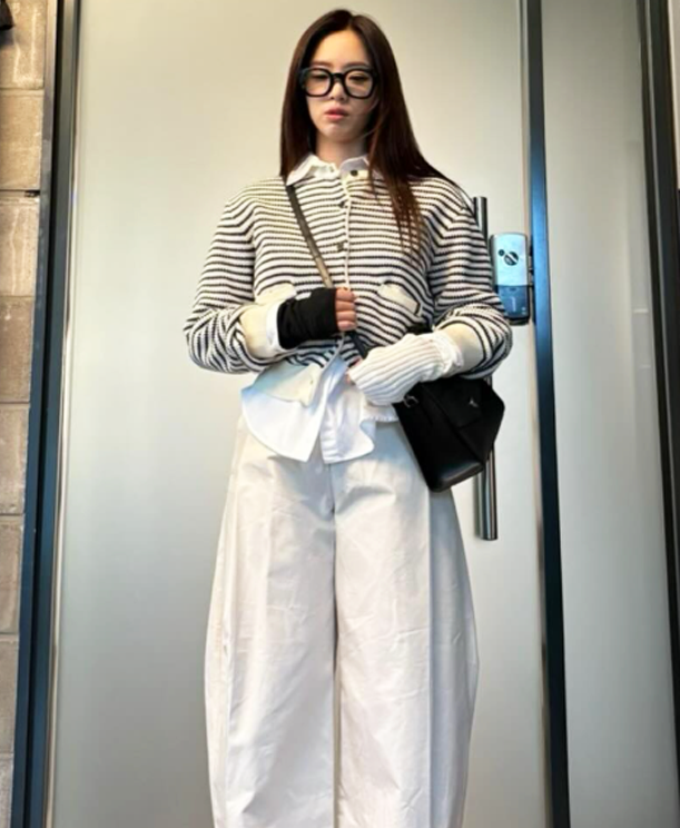 반면 이가령은 스트라이프 니트와 셔츠, 와이드 화이트 팬츠를 레이어드한 감각적인 스타일링을 선보였다.