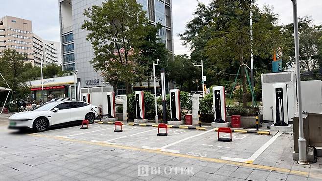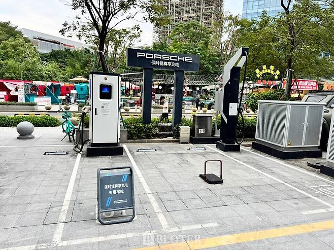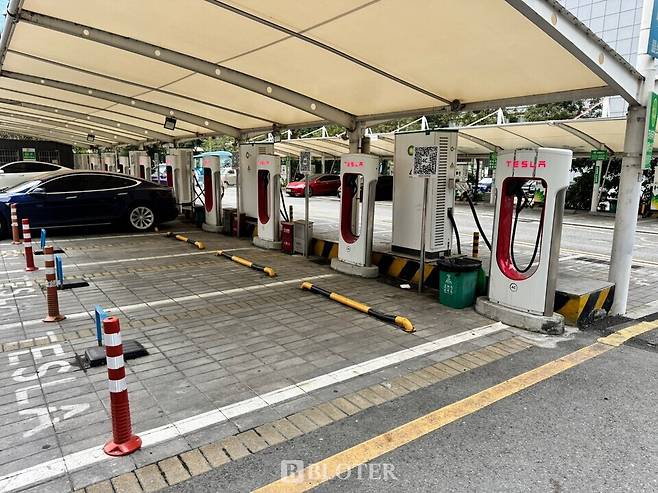 중국 선전 호텔 내에 위치한 테슬라 슈퍼차저/사진=조재환 기자
