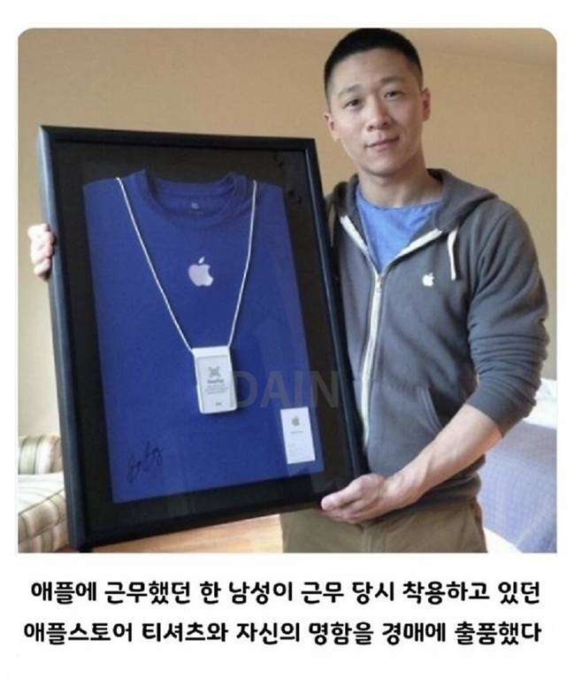 애플직원이 경매에 올린 본인 유니폼과 명함