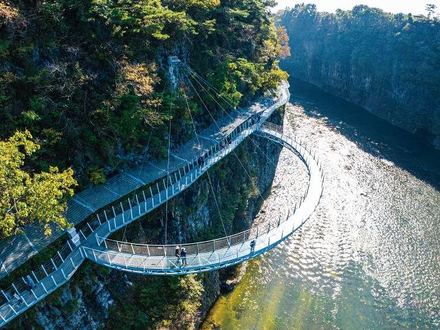 2021년 철원 한탄강 주상절리의 신비로운 절경을 가까이에서 볼 수 있도록 절벽 중간에 설치된 잔도(棧道, 험한 벼랑 같은 곳에 낸 길)가 개방됐습니다. 폭 1.5m, 총 길이 3.6㎞에 이르는 잔도는 ‘한탄강 하늘길’로도 불립니다. 이 하늘길 덕분에 사계절 달라지는 주상절리의 풍광을 바로 눈앞에서 감상할 수 있게 됐습니다. 자연경관 외에도 지질학적·생태적 다양성까지 두루 갖춘 이곳은 문화체육관광부와 한국관광공사가 2년마다 발표하는 ‘한국관광 100선’에 올해 처음으로 이름을 올렸습니다.