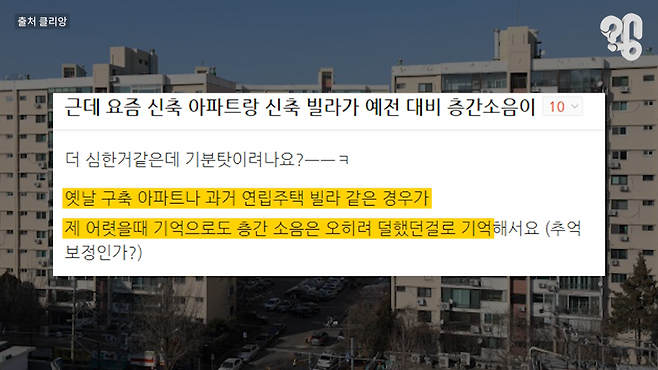 공동주택에 층층이 모여사는 한국인들을 괴롭히는 층간소음. 그런데 아파트 보면 짜증나는건 마찬가지지만 구축에 살 때랑 신축에 살 때랑 소음을 느끼는 정도가 다르기도 한데 유튜브 댓글로 “구축 아파트는 층간소음이 덜하다던데 왜 그런 건지 알아봐달라”는 의뢰가 들어와 취재했다.