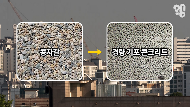 그런데 노태우정부 당시 신도시 건설과 아파트 200만호 공급 등이 현실화되면서 아파트 층간소음은 지옥의 문이 열리게 된다. 신도시 광풍이 지나간 90년대 들어 콩자갈은 점점 채취가 어려워져 아파트 바닥에서 자취를 감춘다. 대신 콩자갈의 대체재로 등장한 ‘경량 기포 콘크리트’를 사용했다. 여기엔 단가 문제도 있었는데 콩자갈은 직접 인부가 메고 올라가느라 인건비가 더 들고 어려운데, 경량 기포 콘크리트는 위에서 기계로 시멘트처럼 부으면 되니까 훨씬 비용도 적게 들고 쉽기 때문이다.