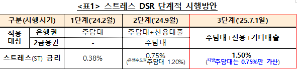 3단계 스트레스 DSR은 2금융권을 비롯해 은행권 전체의 DSR에 적용되며, 모든 가계대출에 대해 적용된다.