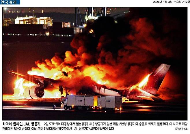 일본 도쿄의 관문 하네다 공항에서 일본항공(JAL) 여객기와 해상보안청 항공기 간 충돌 사고가 발생한 지 2일로 1년이 됐다.