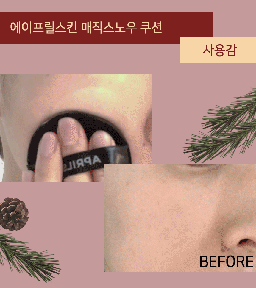 에이프릴스킨 매직스노우 쿠션은촉촉하면서도 커버력이 엄청났는데컨실러 없이도 쿠션 하나로기미, 잡티까지 싹 커버돼.