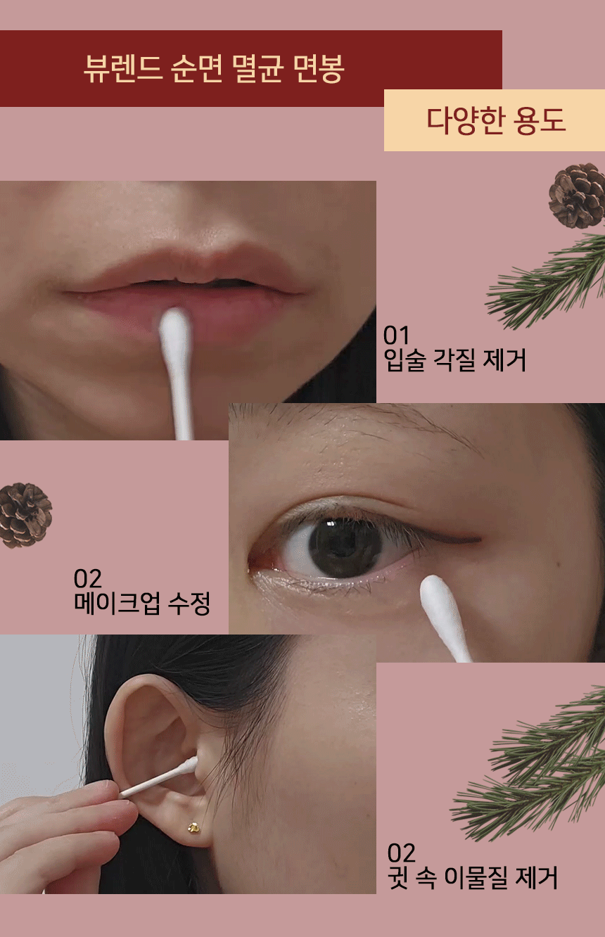 예전에는 손가락을 이용해 귀 내부를 닦았는데,염증 생길 수 있다는 이야기를 듣고 이렇게 멸균 면봉을 이용하기에 조금 더 안심되는 것 같아.