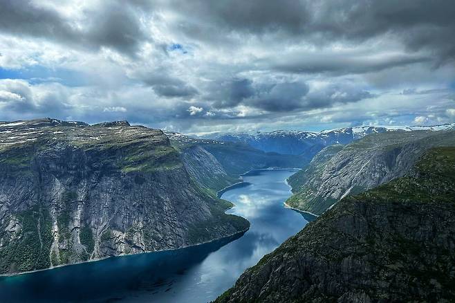서부 해안에 위치한 피오르 지역은 수천 년 동안 빙하가 깎아 만든 장엄한 협곡 풍경을 감상할 수 있고, 그중 게이랑에르 피오르와 송네 피오르의 장관의 모습은 웅장하면서도 아름답습니다.