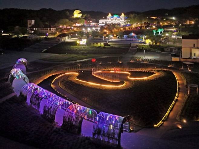 해가 지면 또 하나의 풍경이 깨어난다. 장미 사이사이 켜진 조명이 길을 밝혀주고, 은은한 빛 속을 걷다 보면 어느새 마음도 가벼워진다. 전북 임실군의 대표 관광지, 임실치즈테마파크가 밤에도 빛나는 공간으로 거듭났다.