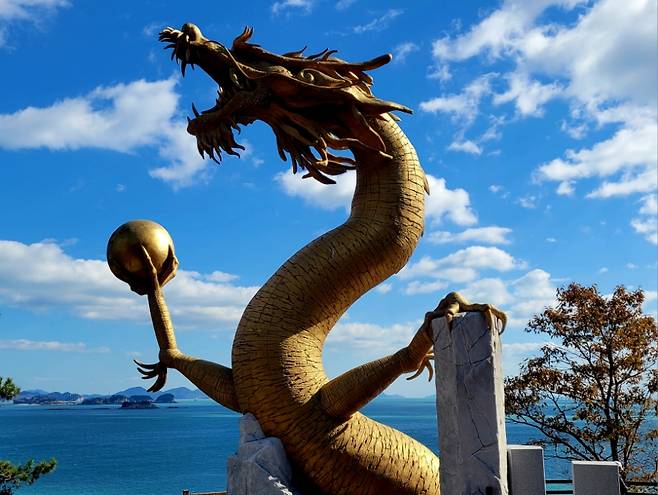 영남용바위는 용이 승천할 때 올라간 흔적을 볼 수 있는 바위야. 이곳은 용에 대한 전설을 간직한 곳으로 용 두 마리가 여의주를 얻기 위해 싸움을 벌였는데, 류시인이 한 마리를 쏴 죽여 싸움에서 이긴 용이 용바위를 발돋움 삼아 승천했다고 해. 이때 승천하며 남긴 용의 발톱 자국이 그대로 남아있다고! 영남용바위 근처 미르마루길 탐방로를 따라 오르면 소원을 들어주는 용 조형물이 있어. 바다를 배경으로 여의주를 들고 승천하는 용의 모습에서 좋은 기운이 느껴지는 것만 같아.