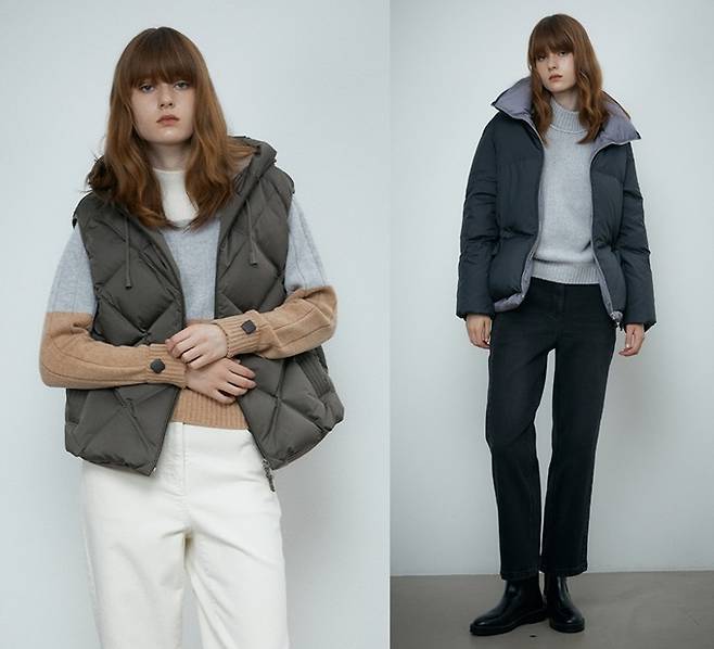 또한 후드 구스다운 베스트와 함께 날씬해 보이는 숏패딩도 각광받고 있다.