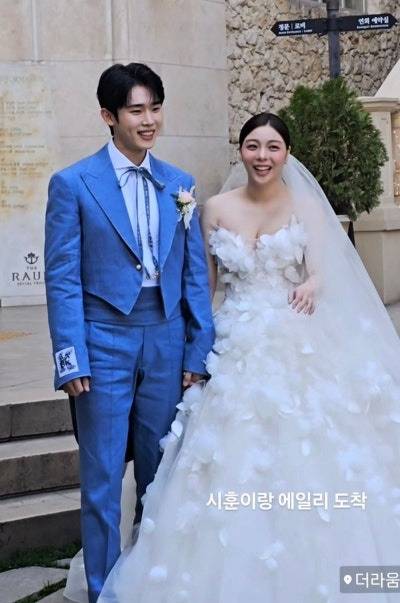 • 세 번째 드레스: 피로연에서 선보인 시크한 블랙 드레스! 🖤 최시훈은 파란색 의상을 맞춰 입고 마치 왕자님과 공주님 같았다는! 🤴👸