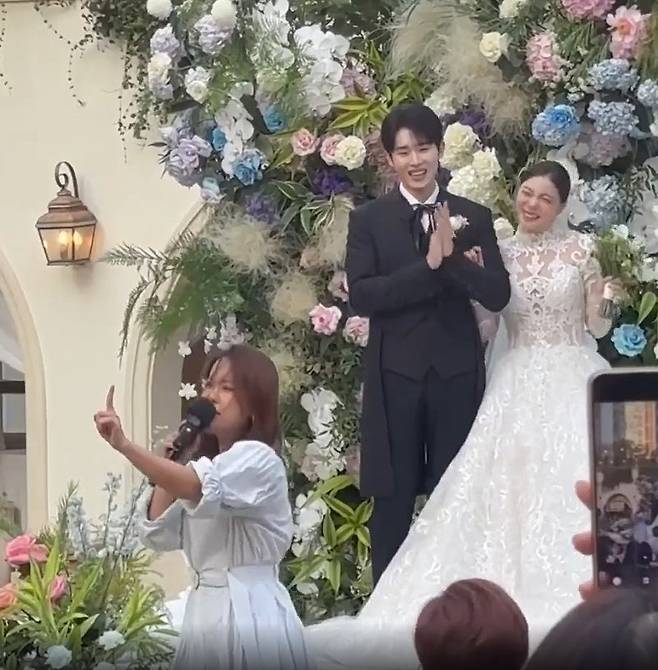 1부 축가는 백지영 언니가 ‘내 귀에 캔디’를 불렀대! 🍬 역시 백지영 언니, 분위기 띄우는 데는 최고! 👍 덕분에 결혼식 분위기가 한층 더 뜨거워졌다는 후문! 🔥