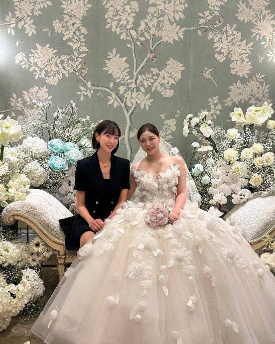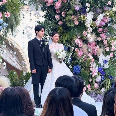 • 두 번째 드레스: 본식에서 입었던 단아하고 우아한 화이트 웨딩드레스! 👰 순백의 아름다움 그 자체였대! 💕