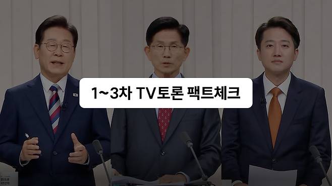 6월 3일(화) 본투표는 물론, 오는 29~30일(목~금) 사전투표가 코앞으로 다가왔잖아요. 빠르게 치러지는 이번 대선 과정 속, 후보들의 공약과 주요 사안에 대한 시각을 엿볼 수 있는 3차례의 TV토론도 모두 마무리됐는데요. 수많은 공방이 오가면서 후보들의 여러 발언이 논란에 휩싸이기도 했어요. 1~3차 TV토론에서 주요 공방의 주제가 됐던 후보들의 발언들을 모아 검증했어요. 👉 후보들의 토론 발언, 모두 사실일까?