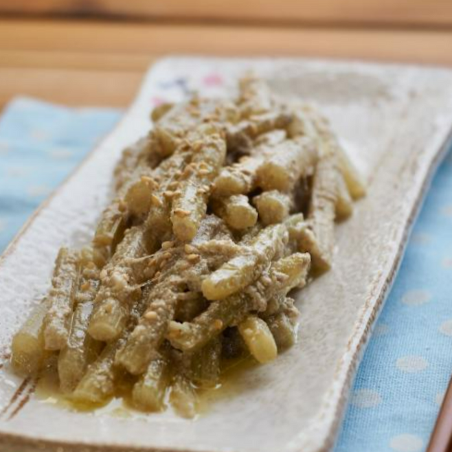 들깨 머위대 무침 – 기름과 수분의 위험한 조합