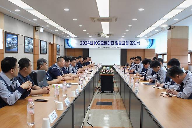 [M 투데이 최태인 기자] KG모빌리티(KGM)가 2024년 임금협상 합의안에 대한 조인식을 가졌다고 밝혔다.