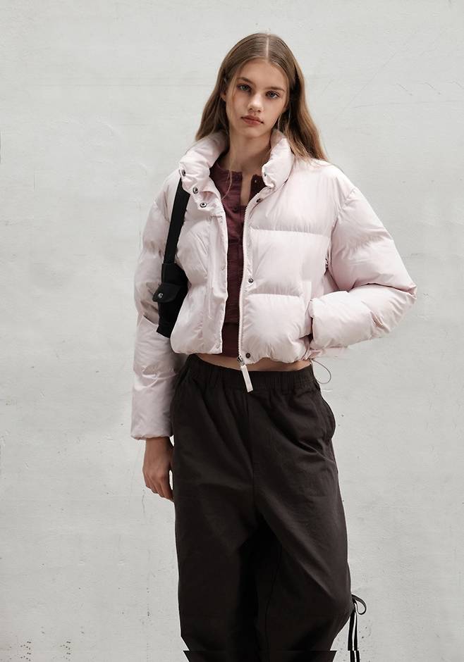 군더더기 없이 깔끔한 디자인의 라이트 핑크 숏패딩과 멀티 포켓 카고팬츠는 자유분방한 스트리트 스타일 잇템으로 출시와 동시에 겨울 필수템으로 MZ세대의 인기를 얻고 있다.