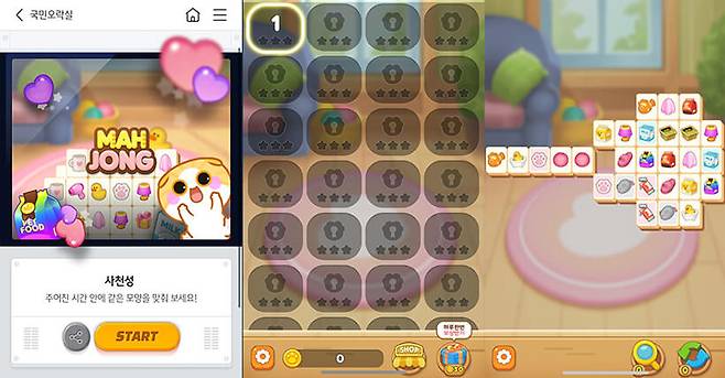 KB스타뱅킹 국민오락실에서 즐길 수 있는 또 하나의 게임인 ‘사천성’ 또한 직관성을 중시한 게임이다. 게임을 시작하면 다양한 무늬의 블록이 눈 앞에 펼쳐지며, 이용자는 한 번에 같은 무늬를 가진 두 개의 블록을 선택할 수 있다. 만약 선택된 블록들이 직선으로 두 번 이하로 꺾어서 연결할 수 있을 경우 소거된다. 유저에게 주어지는 미션은 제한시간 내에 주어진 블록을 모두 제거하는 것이다. 도중에 어려움에 처할 경우를 대비해, 임의로 블록을 제거하는 등의 기능을 갖춘 아이템을 구매해 플레이할 수도 있다. 두 게임 모두 게임 플레이를 통해 계정의 레벨을 올릴 수 있으며, 유저간 순위 경쟁을 할 수도 있게 구성돼 있다.