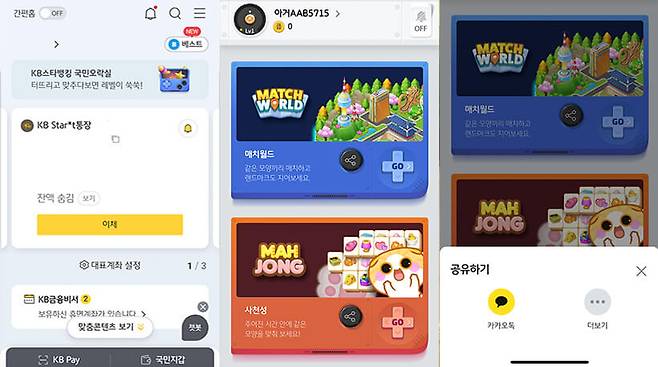최근 HTML5 게임에 주목하는 업계로는 금융권을 들 수 있다. 대표적으로 최근 모바일 뱅킹 앱에 게임 서비스를 도입해 고객층과의 접점 확대에 나선 KB국민은행을 들 수 있다. KB국민은행은 최근 모바일 앱 ‘KB스타뱅킹’에 게임을 즐기고 보상을 받을 수 있는 ‘국민오락실’을 선보였다. 이들이 국민오락실으로 서비스하는 게임은 2종으로, HTML5 게임 전문 개발사인 휴먼웍스에서 개발한 퍼즐 장르의 캐주얼 게임 ‘매치월드’와 ‘사천성’이다.
